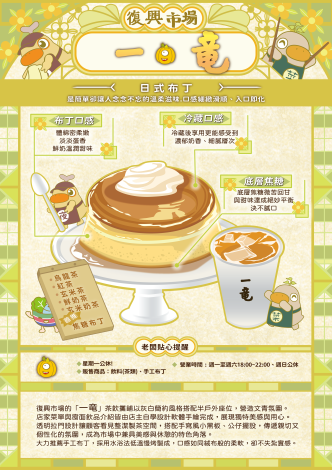 臺南的傳統市場承載著世代共同的生活記憶與古早滋味,為了喚起民眾對市場的情感連結,臺南市市場處特別推出「市場古早味指南」,精選21處市場、49間特色攤位,帶領市民重溫記憶中的好味道,包括麻豆第三市場的「李爽碗粿」、山上公有零售市場的「蘇小兵手作粉漿蛋餅」以及復興公有零售市場的「一竜手工布丁」等,透過這些經典小吃,讓人走進市場時能再次感受古早味的溫度與人情。